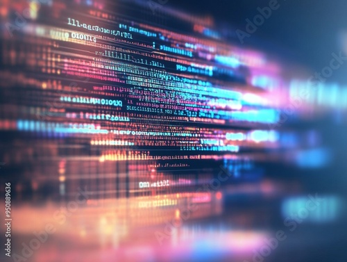 High-Resolution Abstract Background with Blurred Computer Code and Programming Language, Featuring Colorful Data Lines and Unobstructed Space for Text or Product Presentation