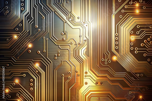 High-resolution abstract digital texture featuring sleek metallic gradient with circuit board patterns, ideal as a