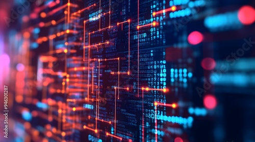 High-resolution close-up of blockchain code with AI data patterns integrated