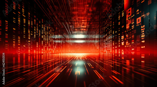 High-speed binary code in data center background