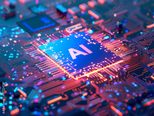 High-Tech AI Processor: Illuminated Circuitry Representing Cutting-Edge Artificial Intelligence and Advance technology