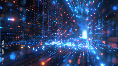 High-tech background with abstract data flow and matrix effects
