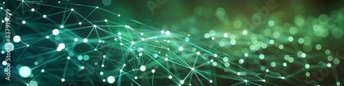 High-tech background with bright green and white dots and lines forming a complex plexus network