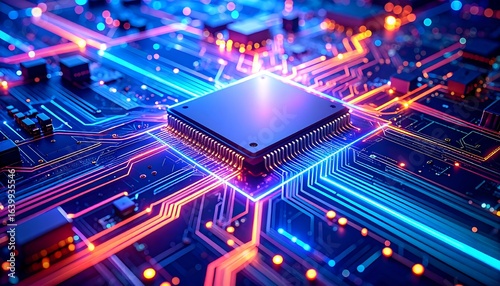 High-tech circuit board with glowing processor