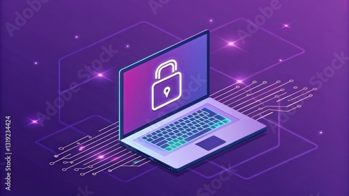 Hightech coding background with digital technology. Digital laptop with a lock icon, symbolizing cybersecurity and data protection.