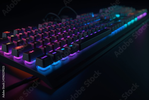 High-tech computer keyboard with RGB lighting, Generative AI