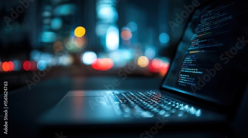 High-tech Computer Programming Coding Software Development Night Tech Environment.