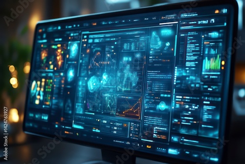 HighTech Computer Screen Displaying Advanced Data Analytics and Visualization