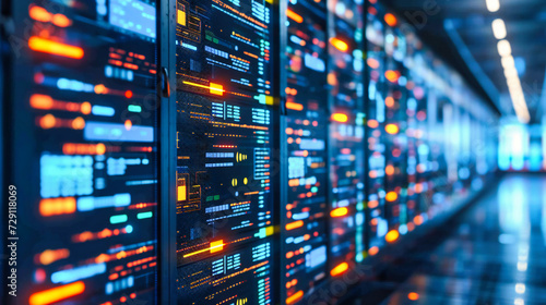 High-tech computing and networking environment with server racks and digital equipment, symbolizing advanced technology and data communication