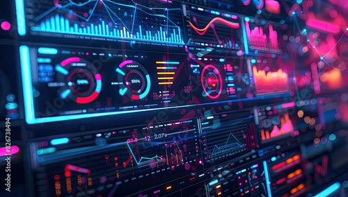 High-Tech Data Dashboard with Colorful Graphs and Charts