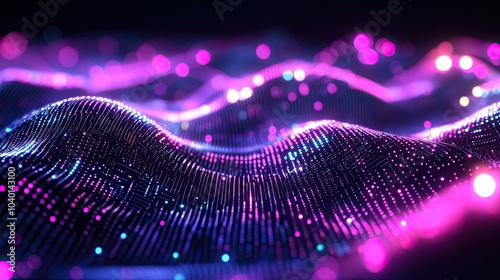High-tech digital waveforms and glowing dots for tech process representations