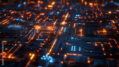 High-tech futuristic background with glowing digital elements and holographic textures, creating an immersive sci-fi atmosphere for technology-themed designs.