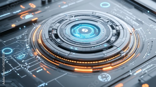High-Tech Interface with Glowing Elements on White Background