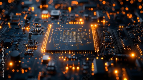 High-Tech Microchip Circuit with Glowing Lights Generative AI