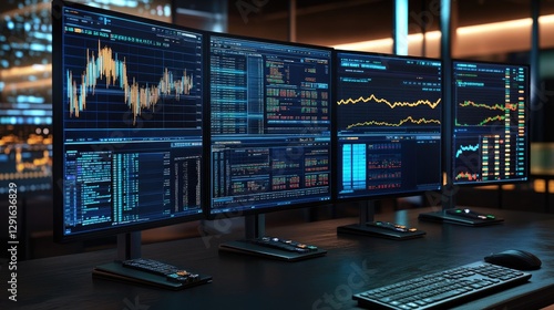 High-Tech Trading Room, Stock Market Data on Multiple Monitors