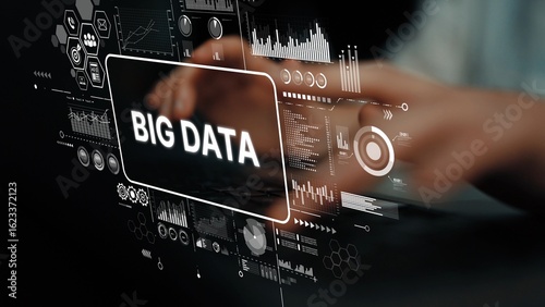 High-Tech Visualization of Big Data Analytics with Hands Interacting with Digital Graphics and Statistics. Asymptotic smart data analytic.