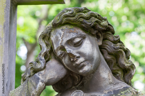 Historic Statue on the mystery old Prague Cemetery, Czech Republic
