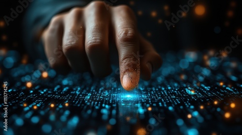holding virtual fingerprint and binary code for internet access and biometric encryption for cybersecurity network and user security concep