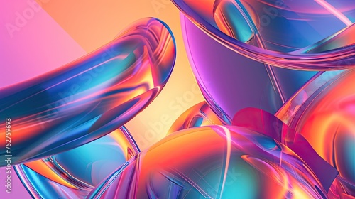 Holo abstract shapes. Translucent, futuristic, mesmerizing, iridescent, geometric, otherworldly, hologram, digital, cosmic, neon, innovative, artistic. Generated by AI