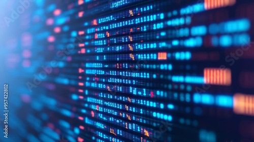 Holographic coding metrics, high-performance programming, neon blue glow