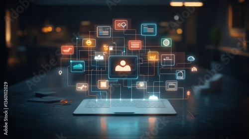 Holographic network of business data on a laptop