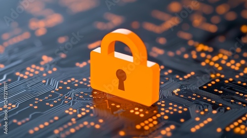 Holographic Security Icon Over Digital Background with Circuit Patterns and Bright Elements