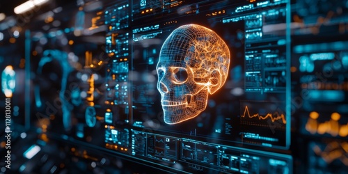 Holographic Skull AI Diagnostics Futuristic Technology Medical Data Visualization