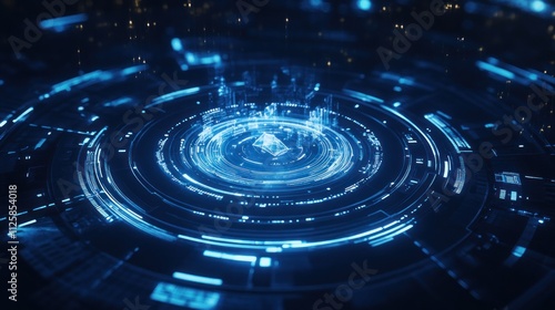 Home icon, digital hologram with white and blue highlights