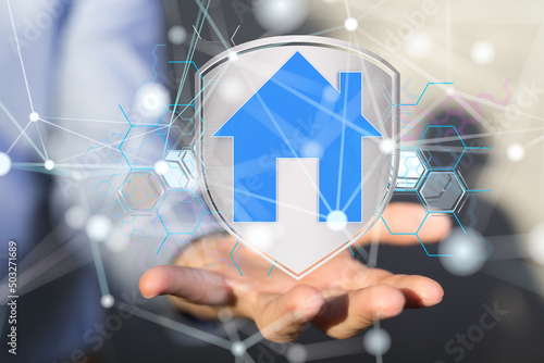 home iot - Neural network 3D illustration. Big data and cybersecurity