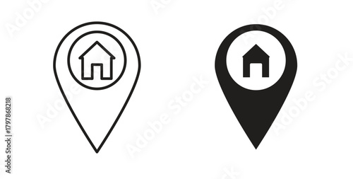 Home location icon with editable stroke and flat vector pack