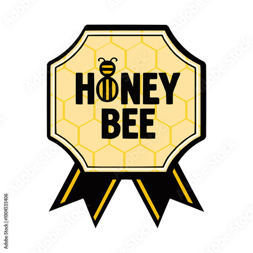 Honey Bee Badge Style Label in Black and Yellow. Generative AI