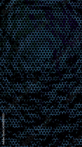 Honeycomb on a blue green background. Perspective view on polygon look like honeycomb. Isometric geometry. 3D illustration
