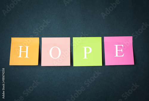 Hope word on a colorful notes.