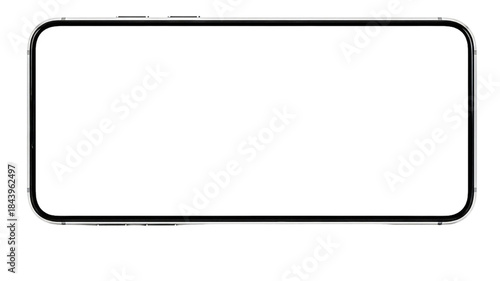 Horizontal blank smartphone screen mock-up with a sleek, modern, widescreen frame