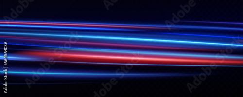 Horizontal neon lines.Blue speed lines.Motion light effect.Vector. red