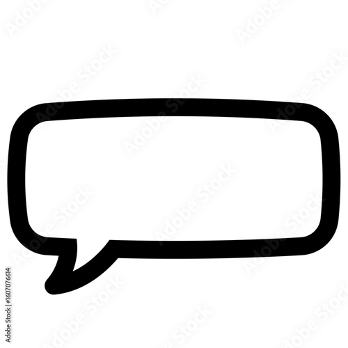 Horizontal rounded rectangle speech bubble with thick black lines and bottom tail, suitable for quotes, chat, or comic captions.