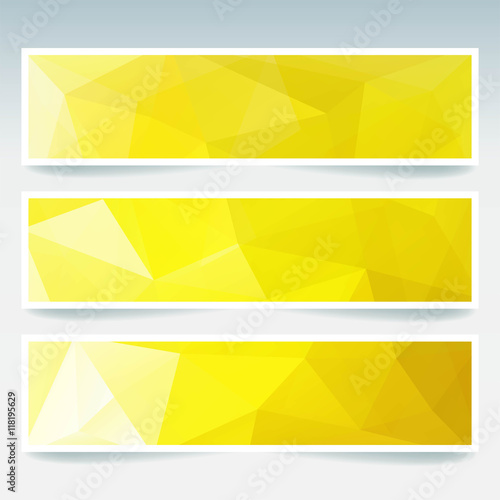Horizontal yellow banners set with polygonal triangles. Polygon background