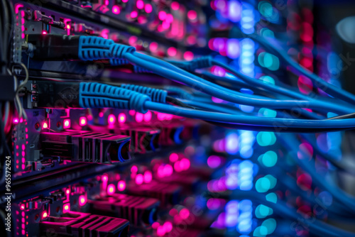 Hosting Internet Content Data Center Rack Network Cable Connections Server Hardware. Concept Data Network Cabling
