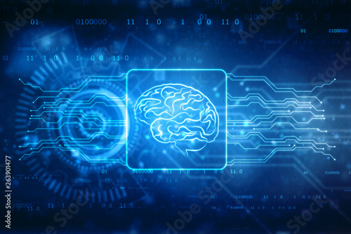 Human brain 2d illustration, Digital illustration of Human brain structure, Creative brain concept background, Concept of Thinking