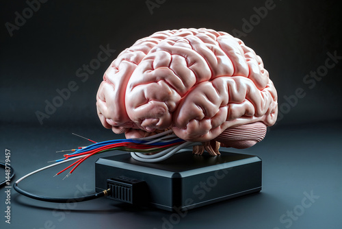 Human Brain Connected to Wires Artificial Intelligence Concept