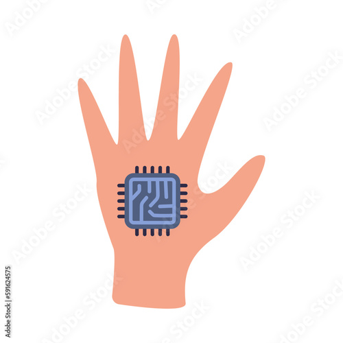 Human Hand with Implanted Chip as Future Nano Technology Vector Illustration