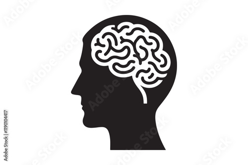 Human head profile with brain symbol, black icon vector illustration