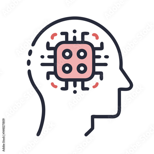 Human Head with Brain Circuit Icon Representing Artificial Intelligence and Cognitive Computing