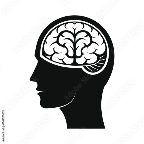 Human Head with Brain Tree Circuit Icon – AI Mind Vector Silhouette
