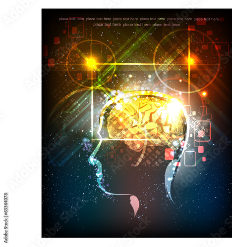 human's head generating ideas, neon background