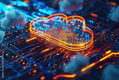Hybrid cloud network. Server, storage, data transfer. Generative Ai