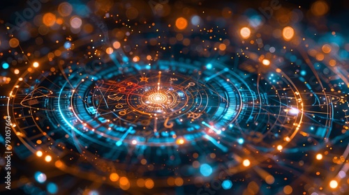 Hypnotic astrology chart with cosmic elements on a mesmerizing space background