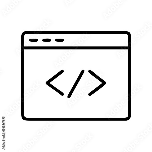 Icon of a browser window displaying programming code and web development