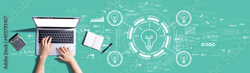 Idea light bulb theme with person using a laptop computer