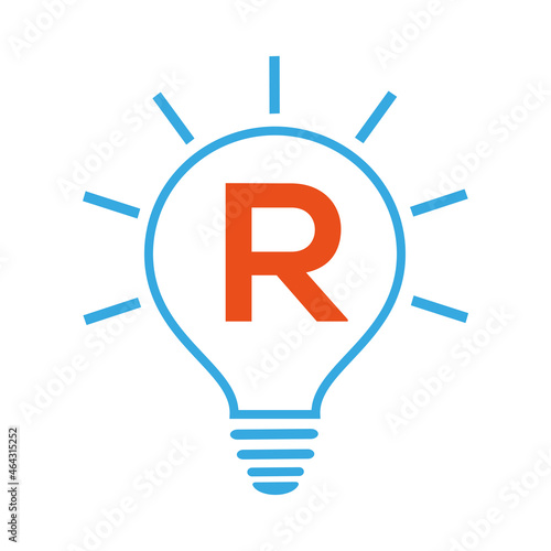 Idea Logo. R letter logo with electric bulb vector